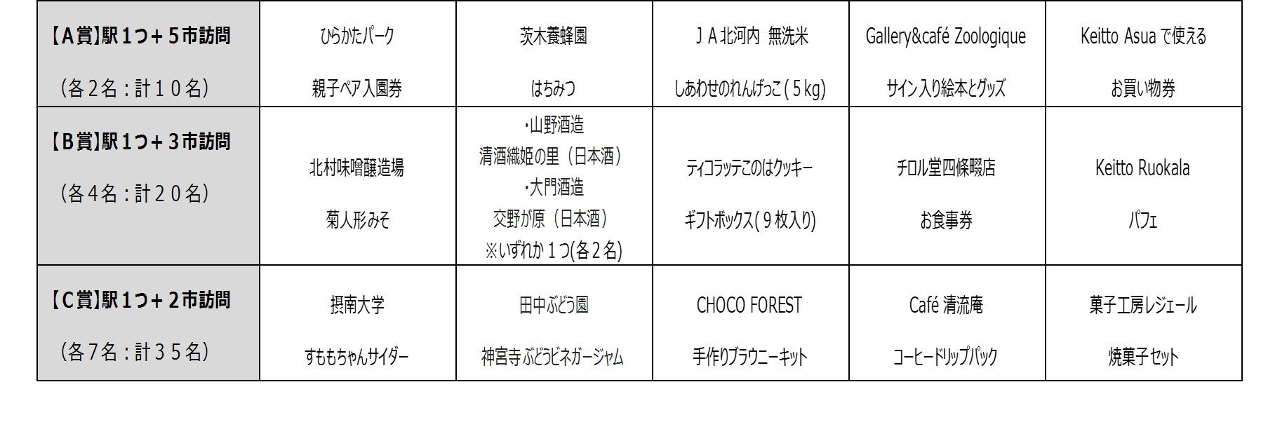 ※A・B・C各賞の中でいずれかの賞品が当たります(賞品を選ぶことはできません)