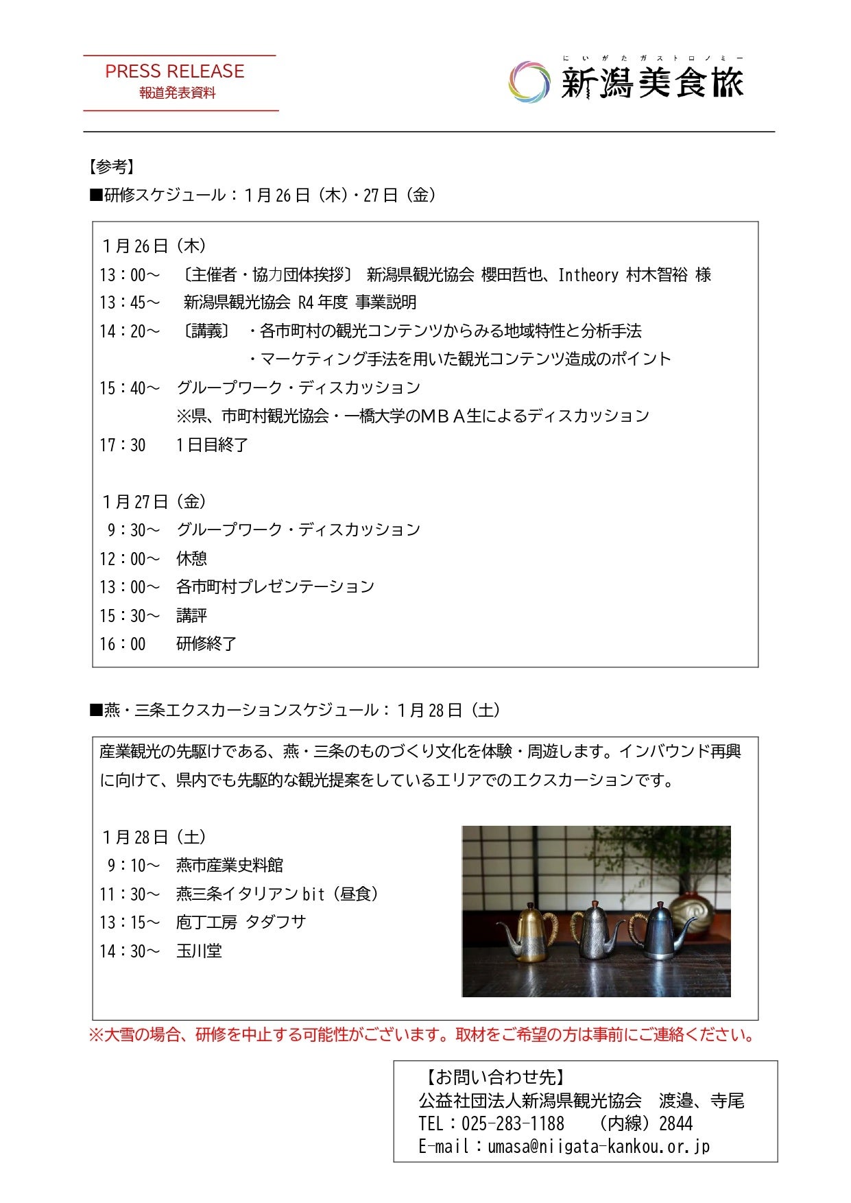 - 燕・三条エクスカーションスケジュール:1月28日(土)