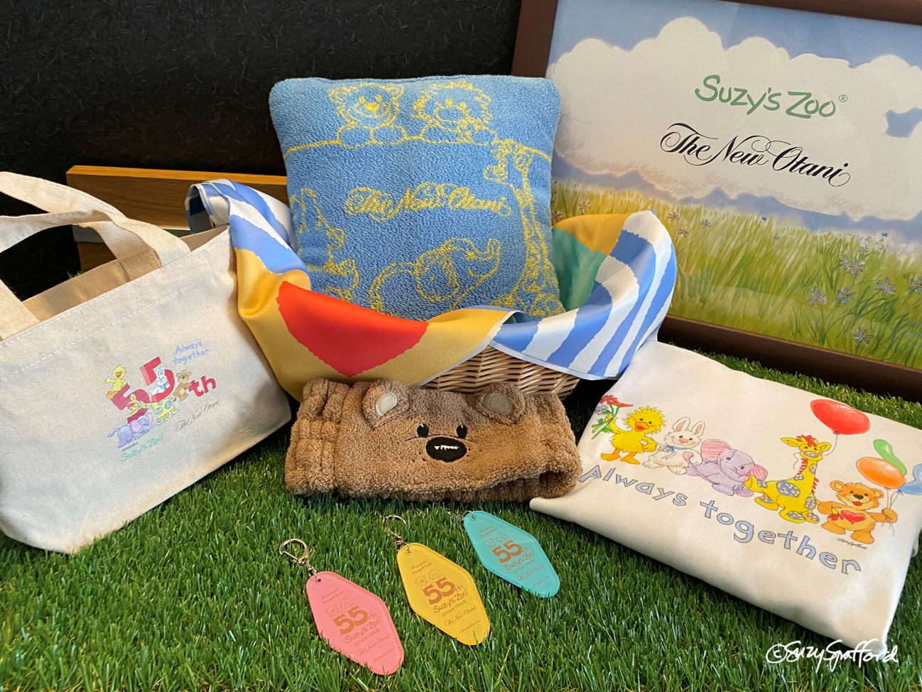 今回、全貌初公開となる、当プランのご宿泊者さま限定でもらえるノベルティグッズは、今回のコラボのためだけに作られた完全オリジナルグッズばかり!「Suzy’s Zoo(スージー・ズー)」の55周年を記念した限定デザインもございます。