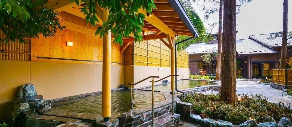 もともとあったヒノキ林をできる限り活かして建てられており、露天風呂では木々のアロマを感じながら源泉かけ流しの天然温泉に浸かることができます。