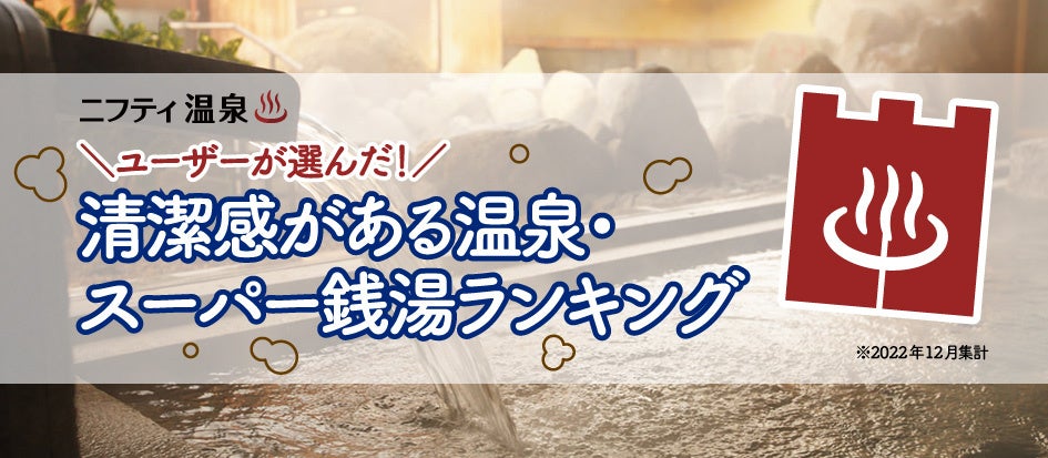 ニフティライフスタイル株式会社(本社:東京都新宿区、代表取締役社長:成田 隆志)が運営する「ニフティ温泉」は、掲載している全国16,328件(2022年12月31日時点)の温泉・温浴施設からユーザーの投票で選ばれた「清潔感がある温泉・スーパー銭湯ランキング」 を発表いたしました。