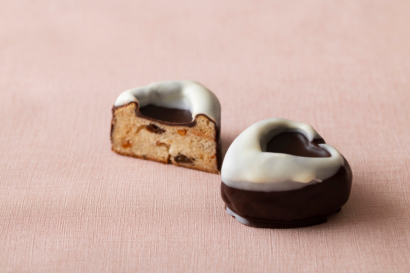 1年以上漬け込んだ芳醇な味わいのミックスフルーツを練りこんだパネットーネに、カカオバリー社の香り高いスイートチョコレートを纏わせました。