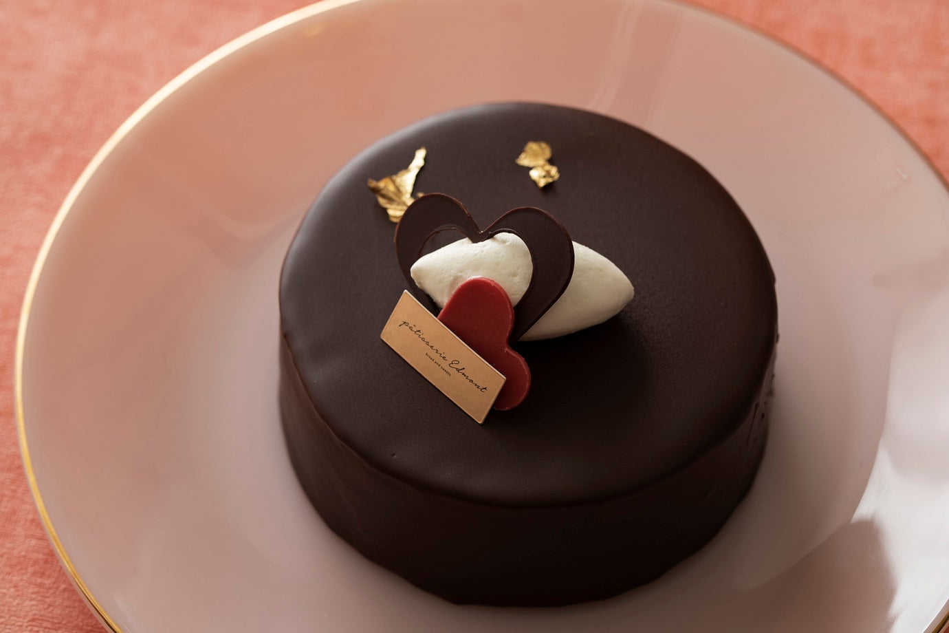 濃厚なクレームショコラと爽やかな酸味のフランボワーズのピューレを、愛らしいハート型のムースに閉じ込めた期間限定のケーキです。