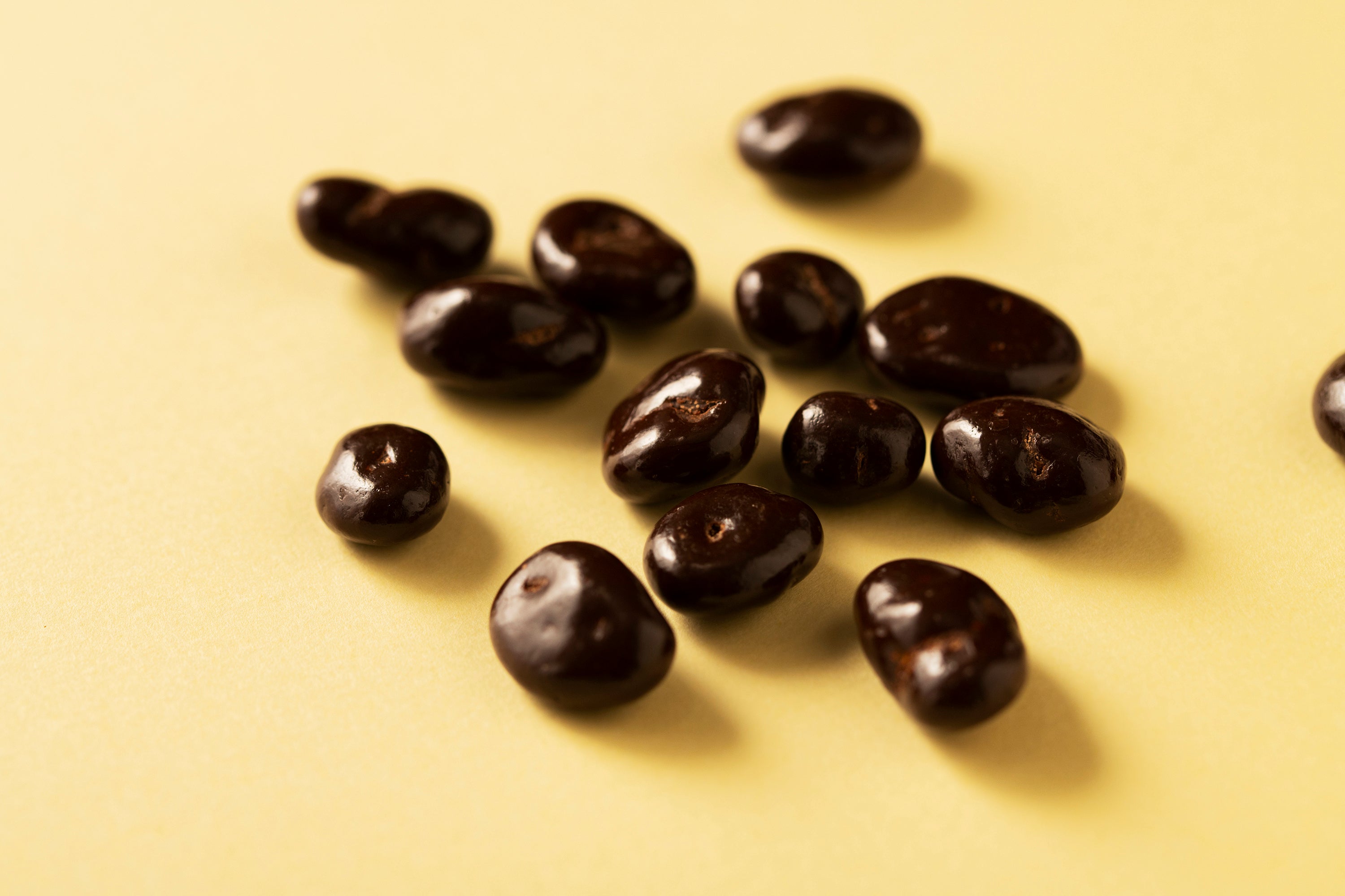 フランス産の貴腐ワイン「ソーテルヌ」で漬け込んだレーズンを、カカオ64%のビターチョコレートでコーティングしました。フルーティな芳香で、ウィスキーやバーボンにもよく合います。