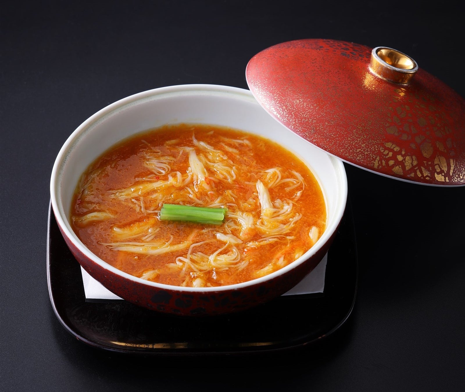 ランチ・ディナーともに、黒田顧問のスペシャリテである「フォアグラの和風ロワイヤル」(写真:下)をオプションメニュー(¥2,200)としてご用意いたします。通常は洋食で使うことが多いフォアグラを、和の玉地に加えたなめらかな洋風の茶わん蒸しに、たっぷりと蟹の身が入った餡をのせて仕上げます。ぜひ、和と洋の贅沢なマリアージュをお楽しみください。