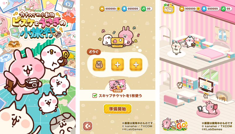 スタンプやSNSで大人気のカナヘイさんのキャラクター【ピスケ&うさぎ】が大活躍するまったり旅行系放置ゲームです♪