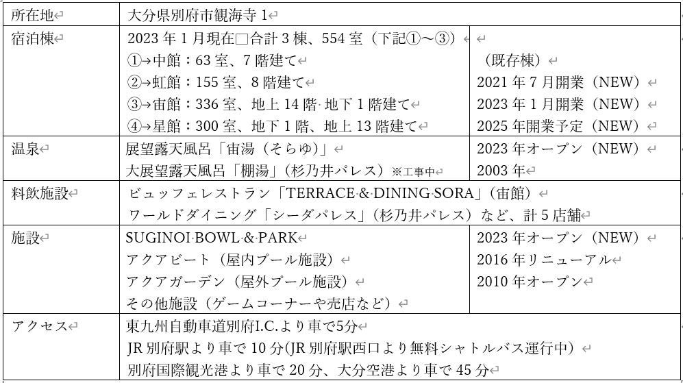 別府温泉 杉乃井ホテル概要 ※2023年1月現在
