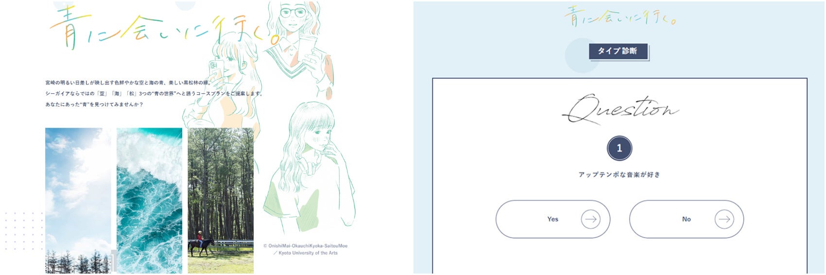 学校法人瓜生山学園 京都芸術大学(京都市左京区/学長 吉川左紀子)芸術学部 情報デザイン学科とフェニックス・シーガイア・リゾート(以下:シーガイア/宮崎県宮崎市:代表取締役 社長執行役員 片桐孝一)がコラボし、企画した宿泊プラン「青に会いに行く。」を2023年1月25日より販売開始いたします。