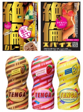 価格:絶倫カレー540円税込 テンガチョコレート3種各540円税込 絶倫スパイス120円税込
