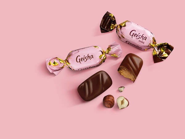 ゲイシャシリーズは、ファッツェル社の商品の中でも特に人気のベストセラーシリーズです。香ばしいヘーゼルナッツのペーストと楽しい食感のクリスピーをミルクチョコレートでコーティングしています。3代目ピーター・ファッツェルが、東京オリンピックのセーリング選手として来日したことがきっかけで、1962年に生まれました。日本のおもてなしの文化である「芸者」から名前をつけ、パッケージにはピンクの桜があしらわれています。