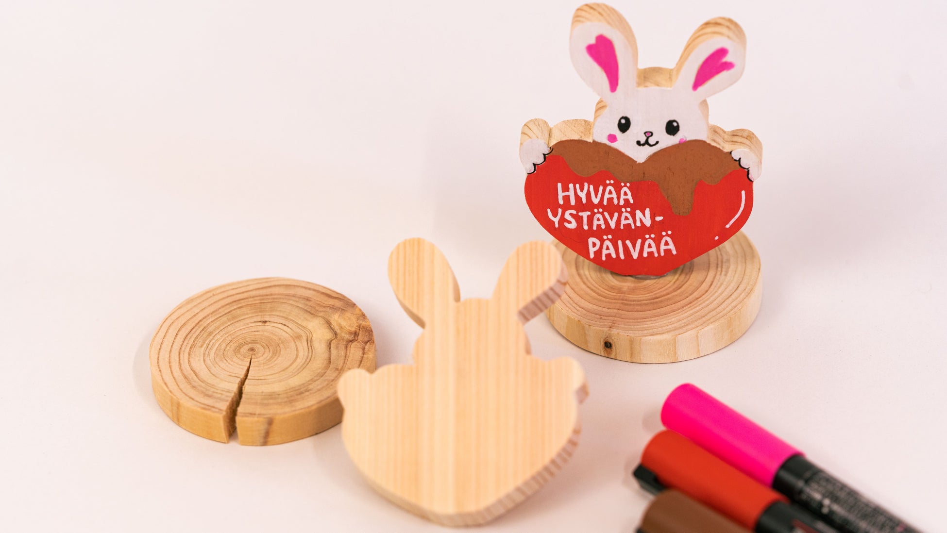 ハートモチーフに切り抜いた桧に絵付けができるワークショップ。