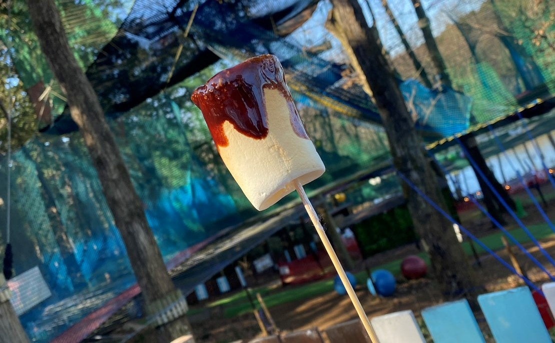 「焼きマシュマロ体験」をご利用いただいた方は、無料でチョコソースをかけ放題!いつもよりちょっと贅沢な味の変化をお楽しみください。