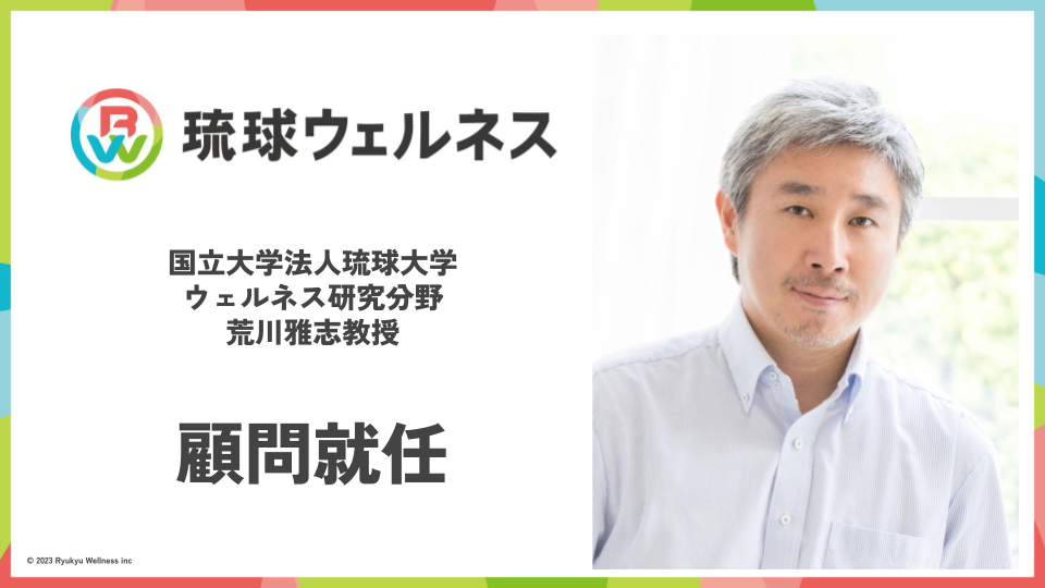 国立大学法人琉球大学にてウェルネス研究分野の代表を務める荒川雅志教授に、顧問に就任頂くことになりました。琉球ウェルネスにおけるウェルネス分野の事業開発と拡大を強力にサポート頂きます。