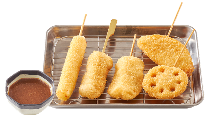アパ社長カレーソースと合う串カツ5種をお得なセットにしました。