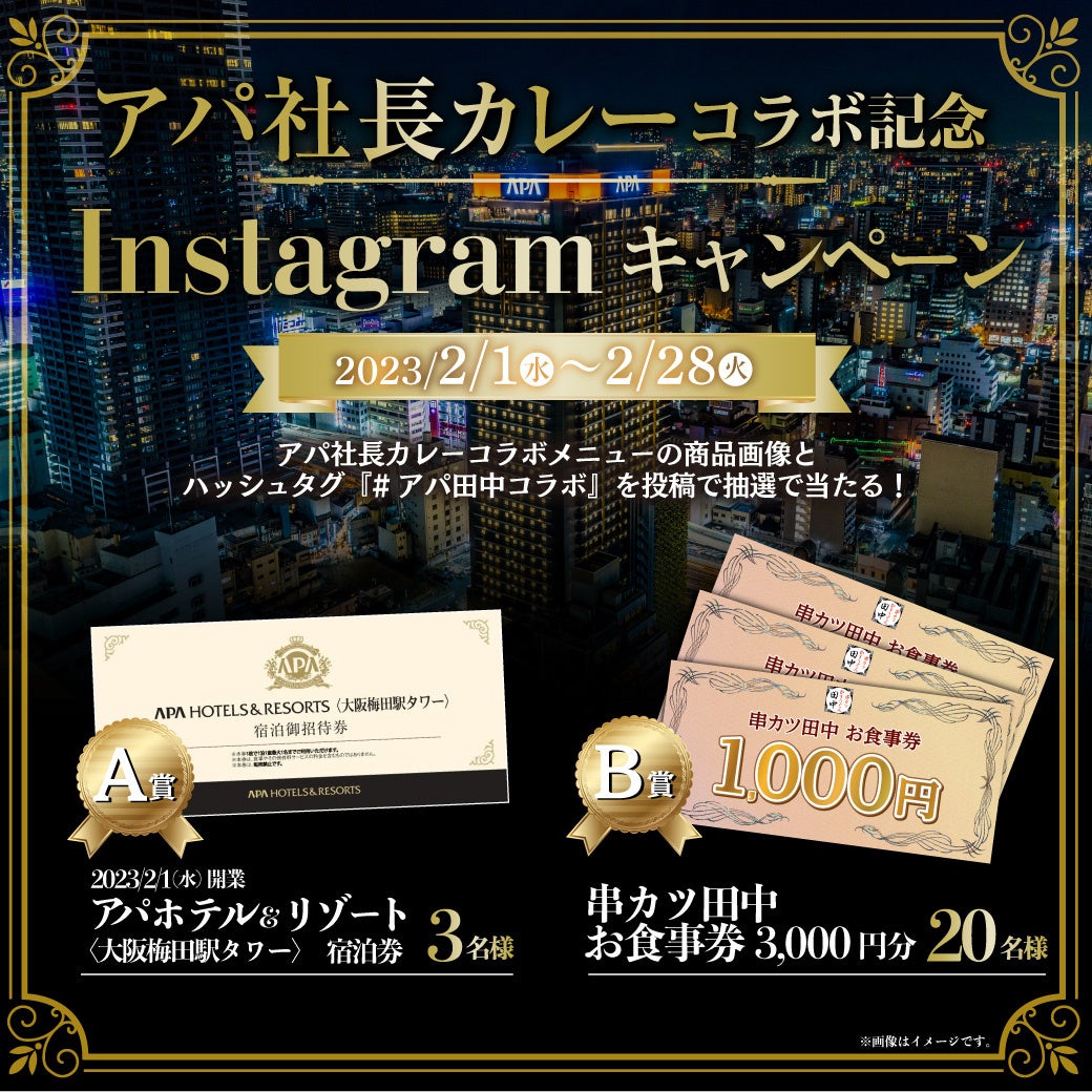 「#アパ田中コラボ」をつけてコラボ商品の写真を投稿すると、抽選でA賞もしくはB賞の賞品をプレゼント