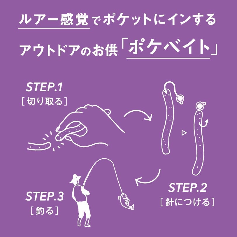 100%天然素材の環境にも優しい釣りエサ「ポケベイト」は、オキアミが主原料のため、魚種や海・川・湖と場所も選ばず、ポケットにインするだけで持ち運びも手軽で、釣り初心者から上級者まで年齢も問わず幅広い方々に好評いただいておりました。この度、従来のポケベイトをさらに釣りやすく、そして釣りシーン・魚種に合わせイソメ・オキアミ・ミミズと主成分を分け、新たに3種のポケベイトを開発いたしました。