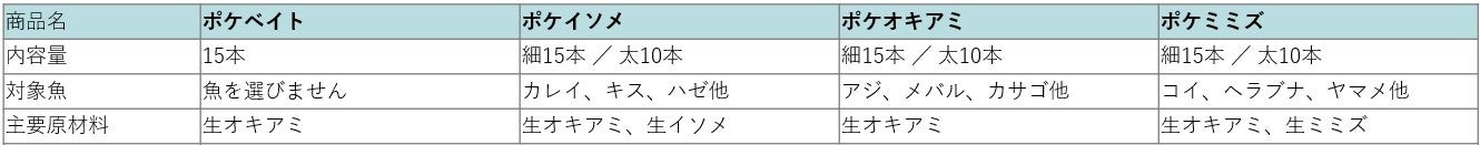 今回ポケベイトをリニューアルするにあたり、釣りシーンや魚種に合わせた3種の釣りエサも新たに開発いたしました。生オキアミや生イソメ、生ミミズ配合の3種を新たにラインナップに追加することで、「釣りエサに何を選んだらよいかわからない」といった釣り初心者が抱える悩みも解消いたします。