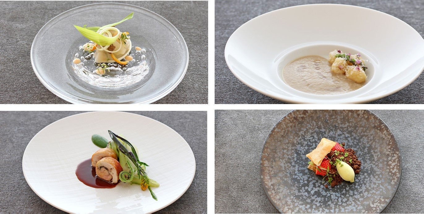 自然の恵みを一皿一皿に美しく。淡路島ならではの素材を堪能するフレンチフルコース。創業当時より取り組む地元素材を活かし創意工夫から生まれる一品一品の旬の豊かな表情をお愉しみください。