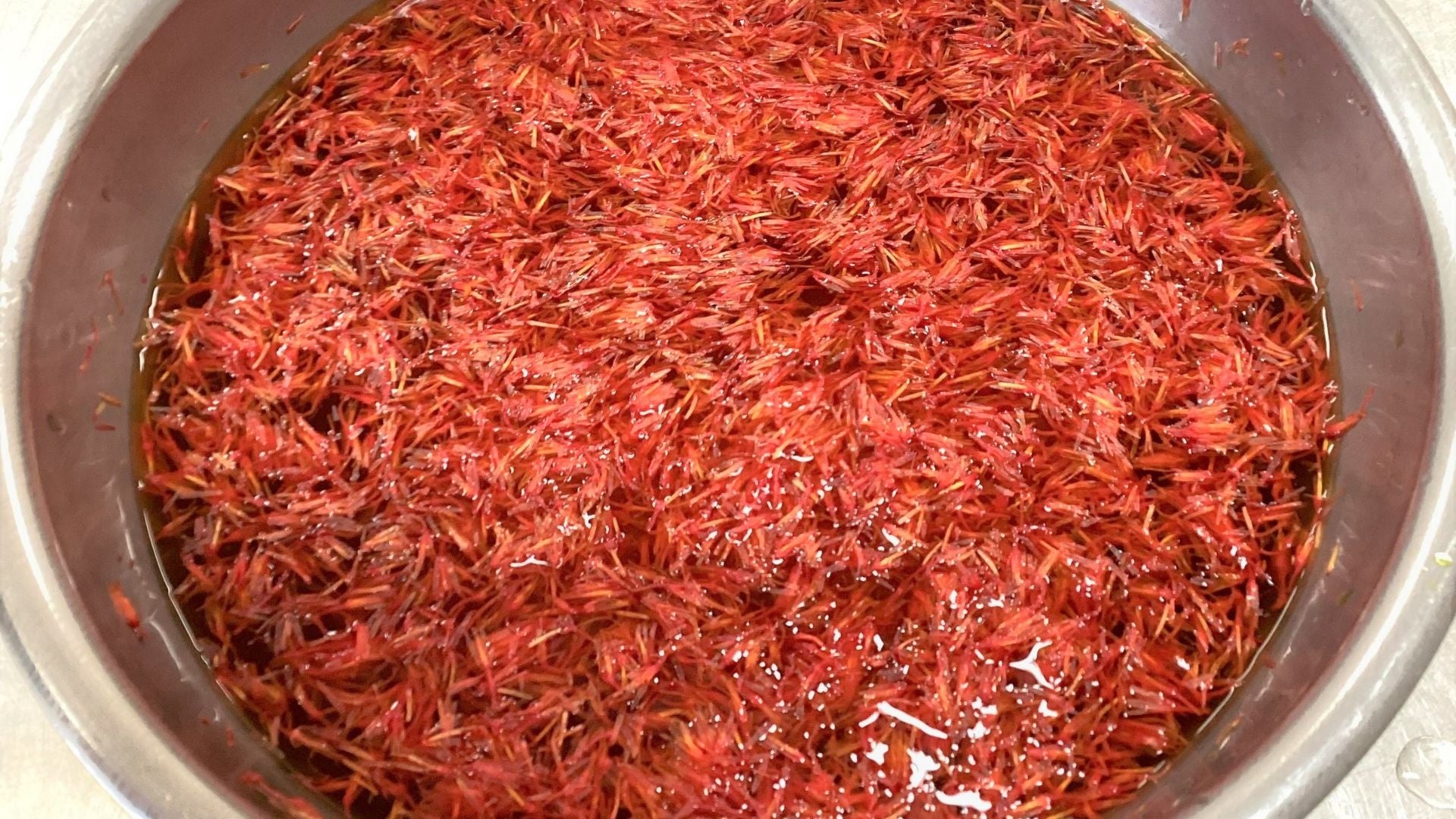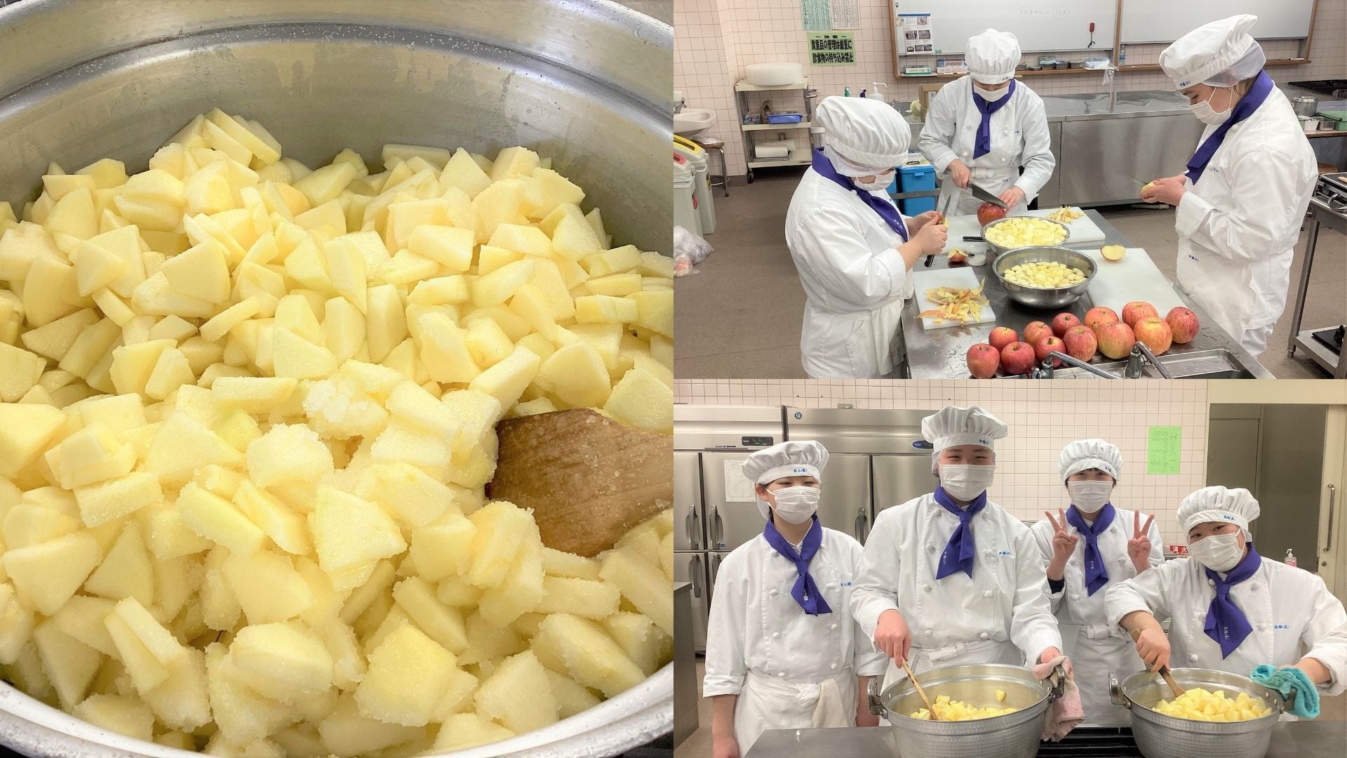 SDGs(フードロス)への意識が高まる昨今、山形学院高等学校の調理科では商品として出荷できないB級品のリンゴに付加価値を加えた商品化の検討を進めてきた。その結果、紅花とりんごを利用したジャムを考案。昨年11月の食フェスタ(調理科の文化祭)で販売し、見た目も味も良いと大変好評を得た。