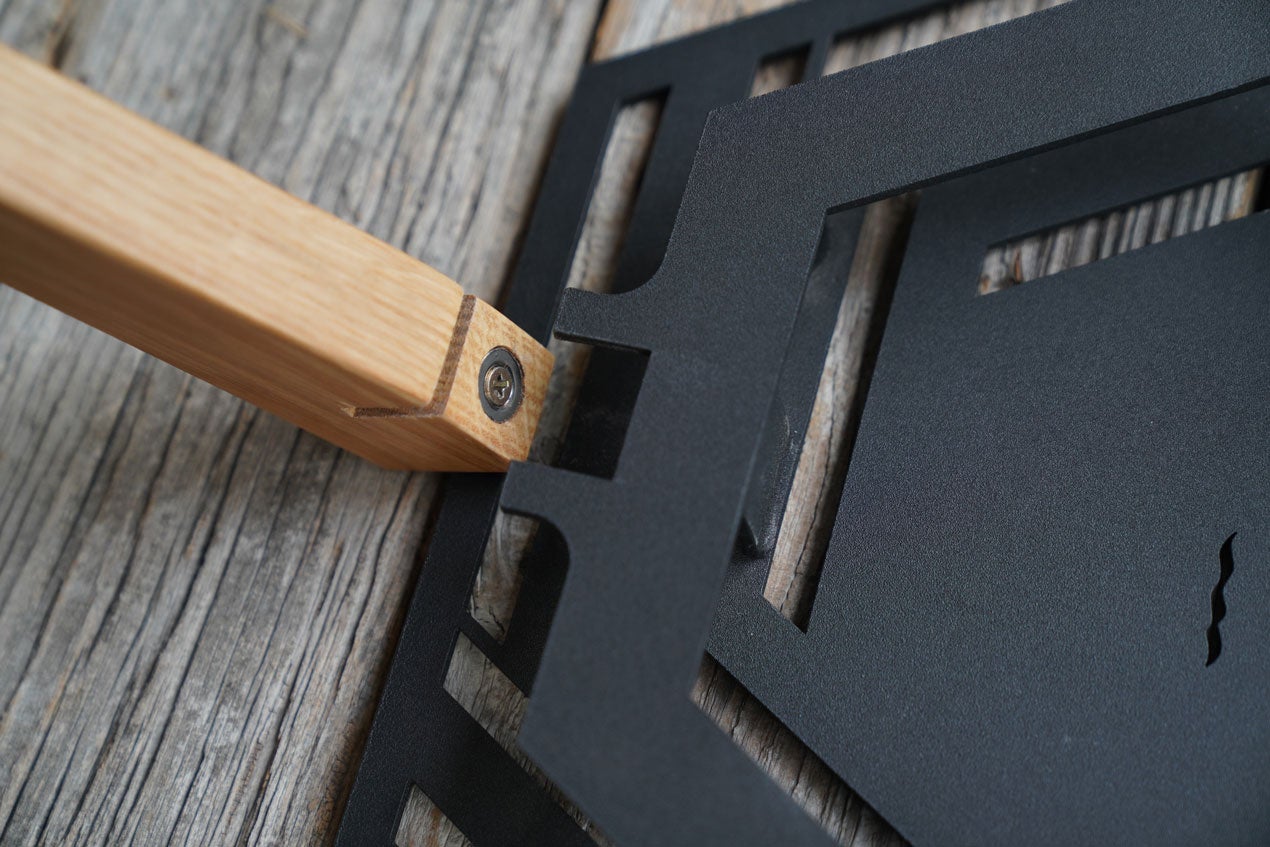 36(サンロク)は、名前の通り、自然の中で使うことを意識しています。そこで、素材をアイアンだけでなく木と組み合わせ、森と調和するデザインを考えました。脚の樹種は、「オーク」と「ウォールナット」をチョイス。サイトの雰囲気に合わせてお選びいただけます。