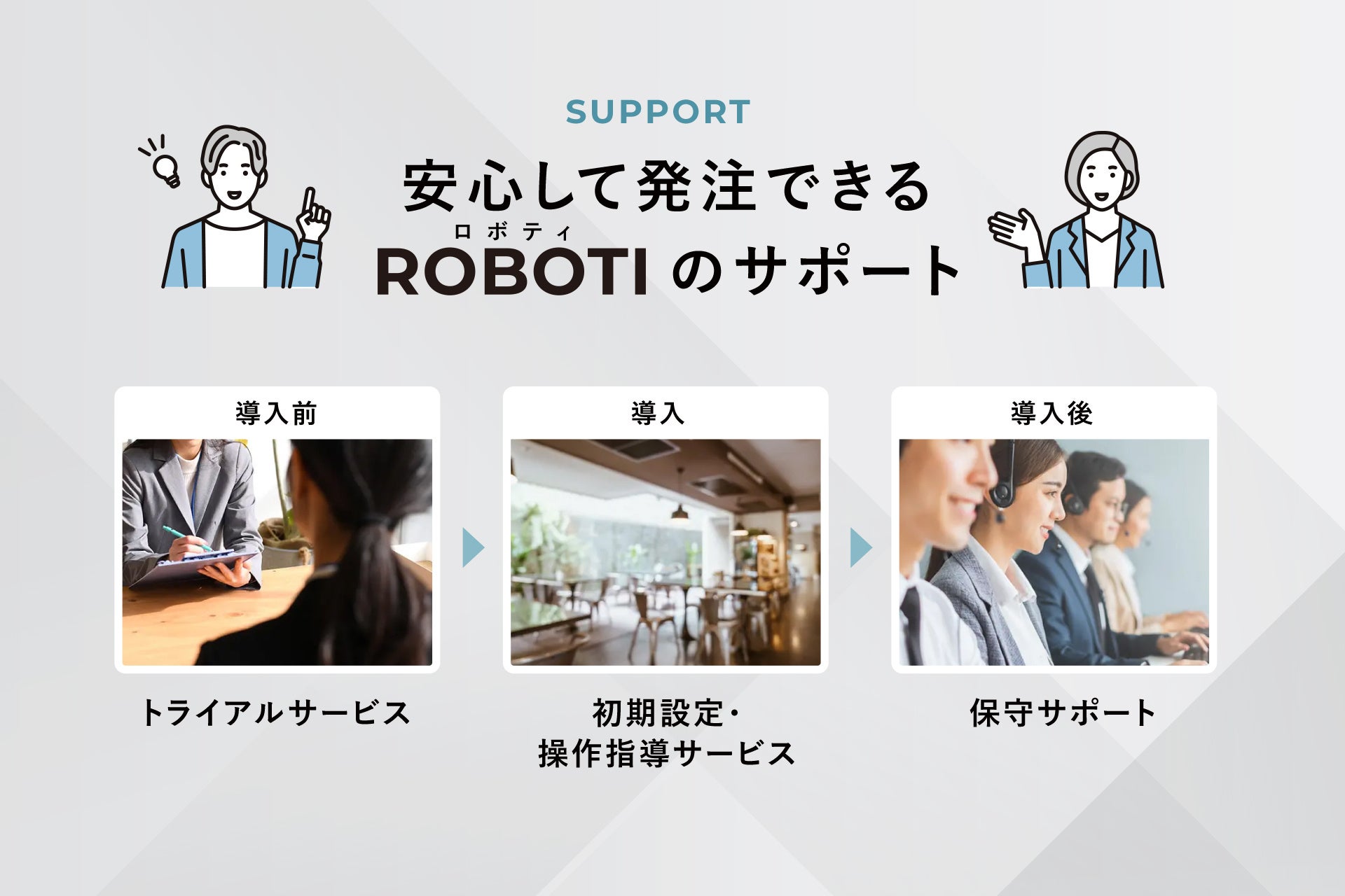 当社は、コロナでマスク不足になったことを機に、企業向けにマスクおよび感染対策グッズの販売を開始しました。多くのお客様の緊急時のお役に立ったとともに、お客様の来店ご案内が間に合わない、配膳が間に合わず料理が冷めてしまう、シフト管理や育成に時間をかけられないなど、ホテル、飲食業の多くのお客様が”人手不足問題”に直面していることに気がつきました。また、働き方の多様化により、休日スタッフの確保が困難などの課題も見受けられます。そこで、創業以来培ってきたものづくりの繋がりとノウハウを活かした当社だからこそ実現できた、製品ラインナップ・製品サポートの充実さが特徴のロボットブランド「ROBOTI(ロボティ)」を立ち上げました。