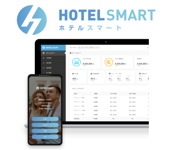 HOTELSMARTはホテル向け業務管理システム(PMS)、スマートチェックインシステムを提供を提供するホテル管理システムです。マイページによる事前の宿泊者情報入力でチェックイン当日の時間のかかる作業を削減し、スムーズなチェックインを実現し、おもてなしの強化を促進します。