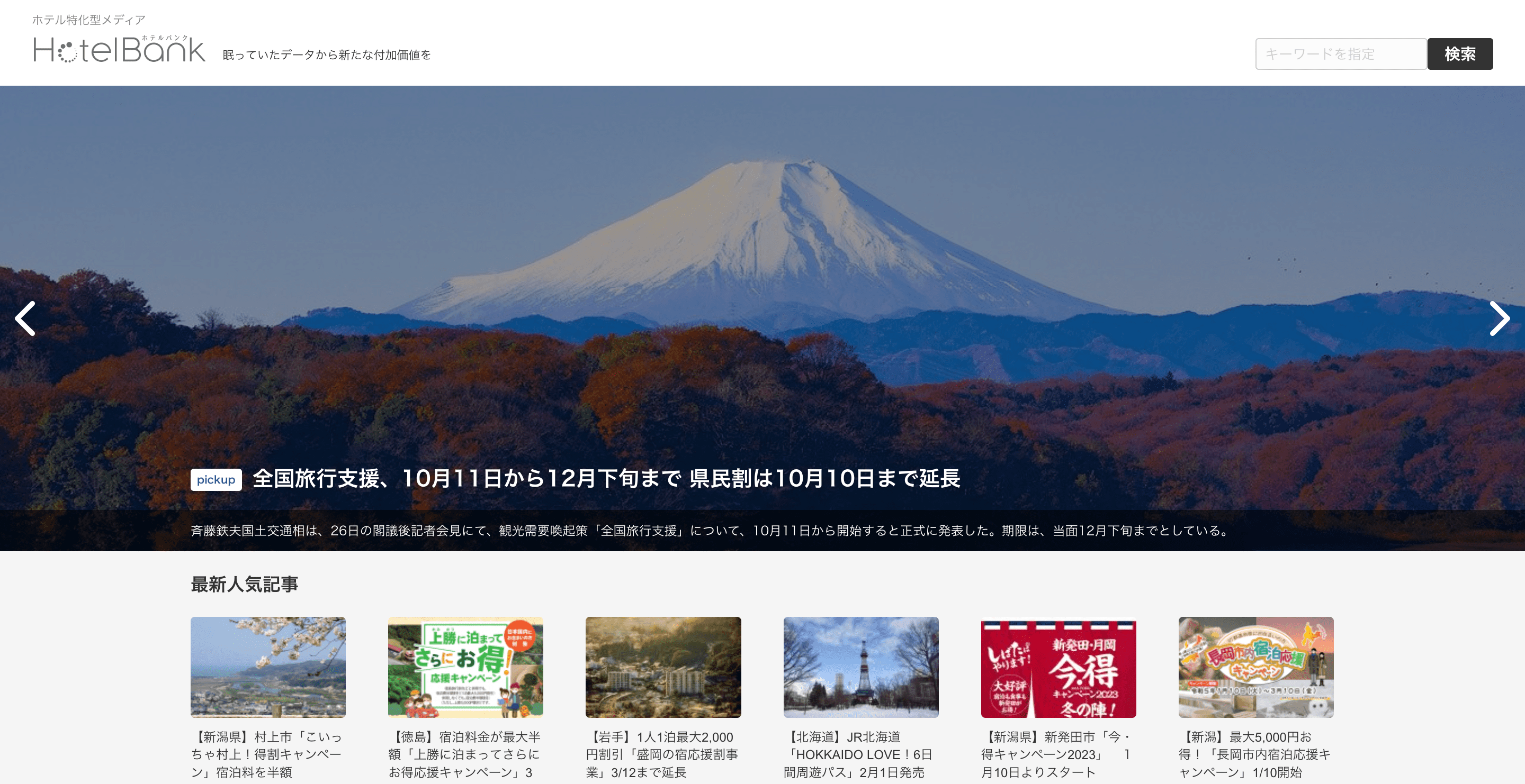 ホテル・旅行関連のニュースはもちろん、メトロエンジンが独自に保有する宿泊関連データを活用した市場調査・分析記事もお届け。