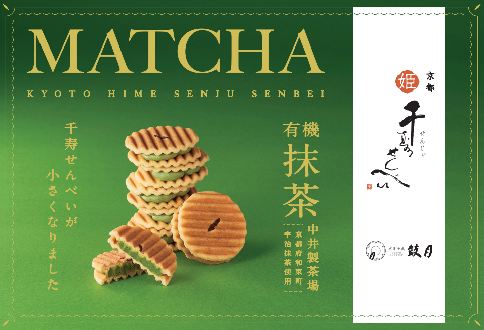 鼓月の京都限定のお手土産としてご愛顧いただいております「姫千寿せんべい 有機抹茶12枚入」の新パッケージを5年ぶりに新発売し京都駅構内3箇所限定で販売いたします。新しい形態として20枚入も新発売いたします。