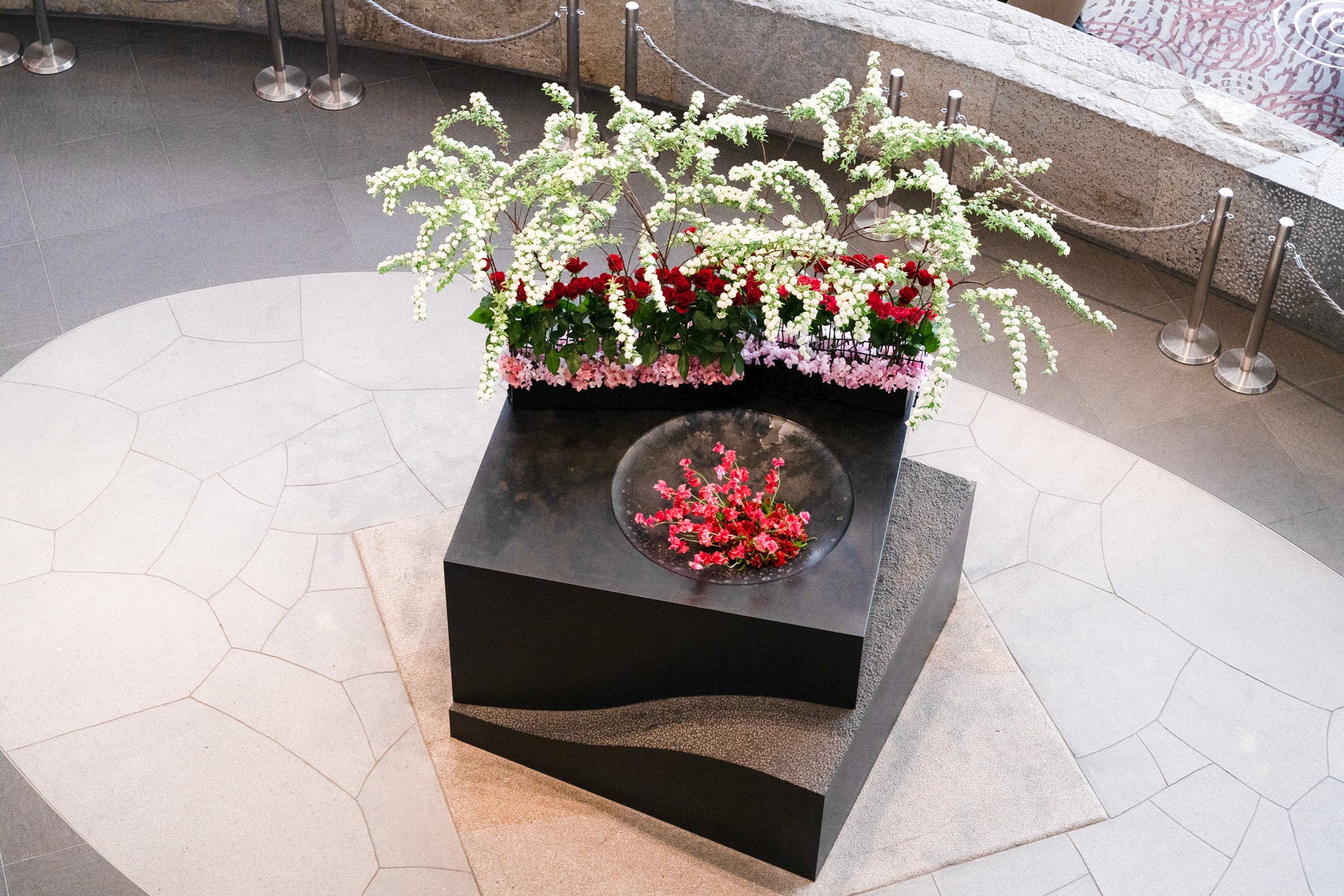 フラワーバレンタインをテーマにした特別ないけばな(スペシャルウェルカムフラワー)がお客さまをお迎えいたします。