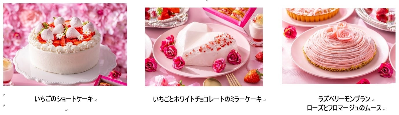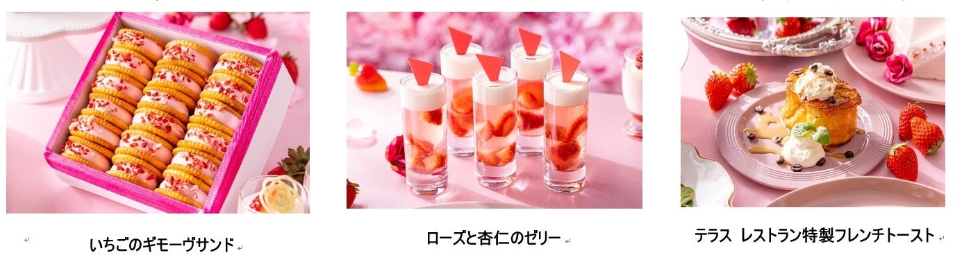 いちごのショートケーキ/ラズベリーモンブラン、ローズとフロマージュのムース/いちごとホワイトチョコレートのミラーケーキ/いちごのギモーヴサンド/ローズと杏仁のゼリー/ラズベリーパンナコッタ、ローズジュレ/ベリーのクランブル/特製フレンチトースト