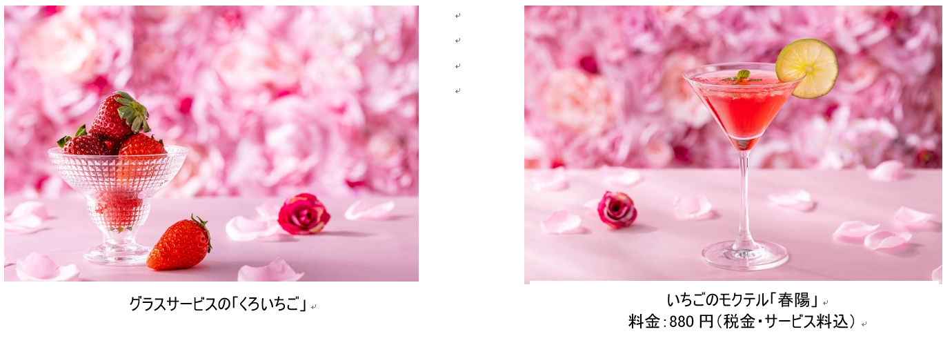 今フェアで若手スタッフが考案したいちごのモクテル「春陽(しゅんよう)」はクランベリージュースに桜のシロップを加えた春らしい爽やかな酸味が魅力です。あたたかい春の日差しが心地よく感じられるランチタイムのお供に、という思いで作ったモクテルです。