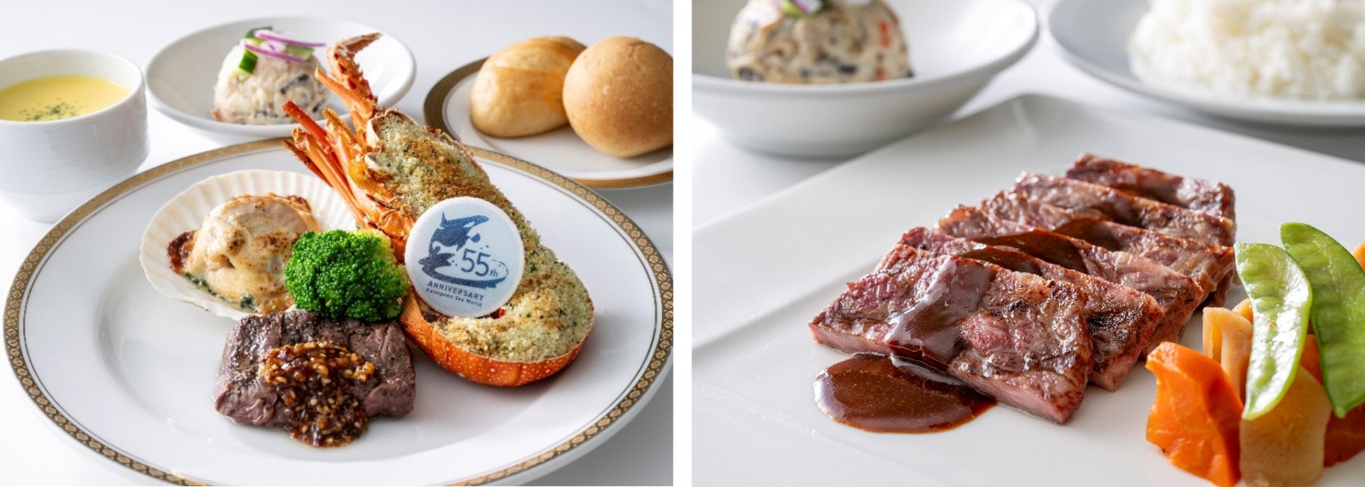 鉄板コーナーではランチタイムに目の前で焼き上げる人気メニューのパリパリチキン、ディナーではシェフおすすめの一品、チーズフォンデュが登場。また、定番の人気メニューの特選ローストビーフ、天ぷらや握り寿司は、ご注文を受けてから目の前で調理しライブ感あふれるパフォーマンスをお楽しみいただけます。