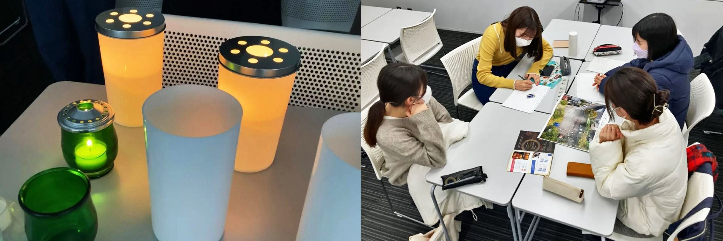 本プロジェクトは、全学共通科目「産学公連携PBLプログラム」にて行うもので、京都の企業と連携し、地域の活性化に貢献することを目的として開講されました。12月から開講した本科目には、芸術学部、デザイン学部、マンガ学部、国際文化学部2年生の9名が参加し、キャンドルの配置やデザイン、個数などを検討し試作を行うなど、イベント開催に向けた準備に取り組んでいます。会場では、株式会社松栄堂様のご協力のもと、お香を焚く演出を行い、視覚だけではなく香りも楽しんでいただける予定です。