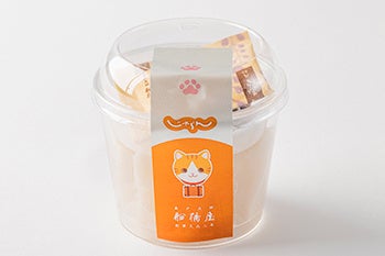 にゃらんパッケージがかわいらしい一口サイズのくず餅入り限定カップ。黒蜜の甘さときな粉の風味がふわっと広がる優しい味わい。