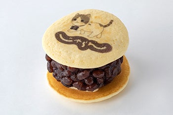 北海道十勝産の低糖あんとバターをパンケーキでサンド。おでかけにゃらんのプリントがかわいい、ボリューム満点のスイーツ。※各日限定30個
