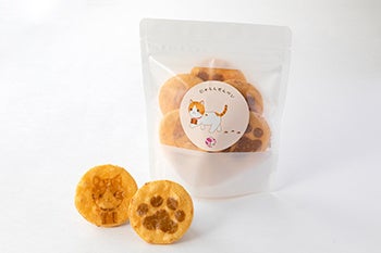 にゃらんの顔と肉球をプリントした、だし醤油味のせんべい。厳選素材を使用して職人が手作りで仕上げているので、プレゼントにもおすすめ。※限定500個