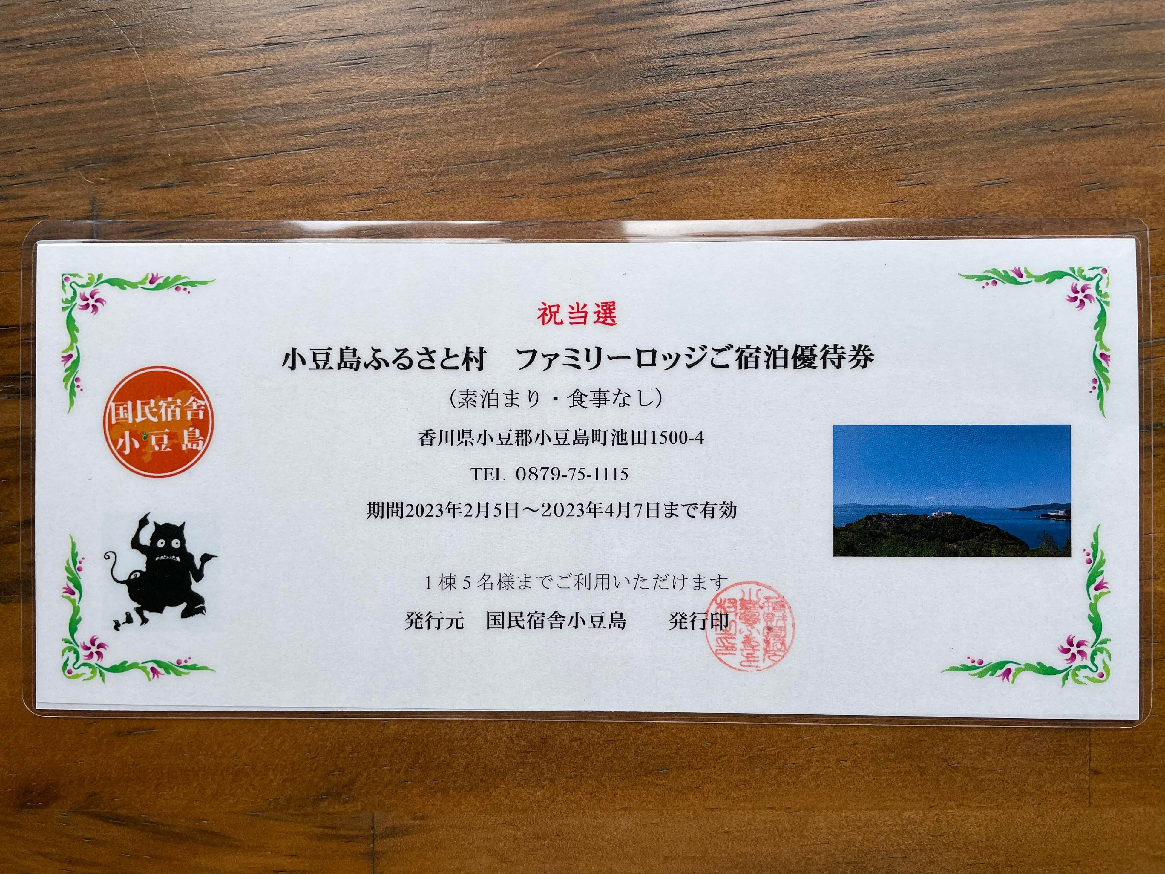 ●小豆島ふるさと村ファミリーロッジ宿泊優待券×1枚