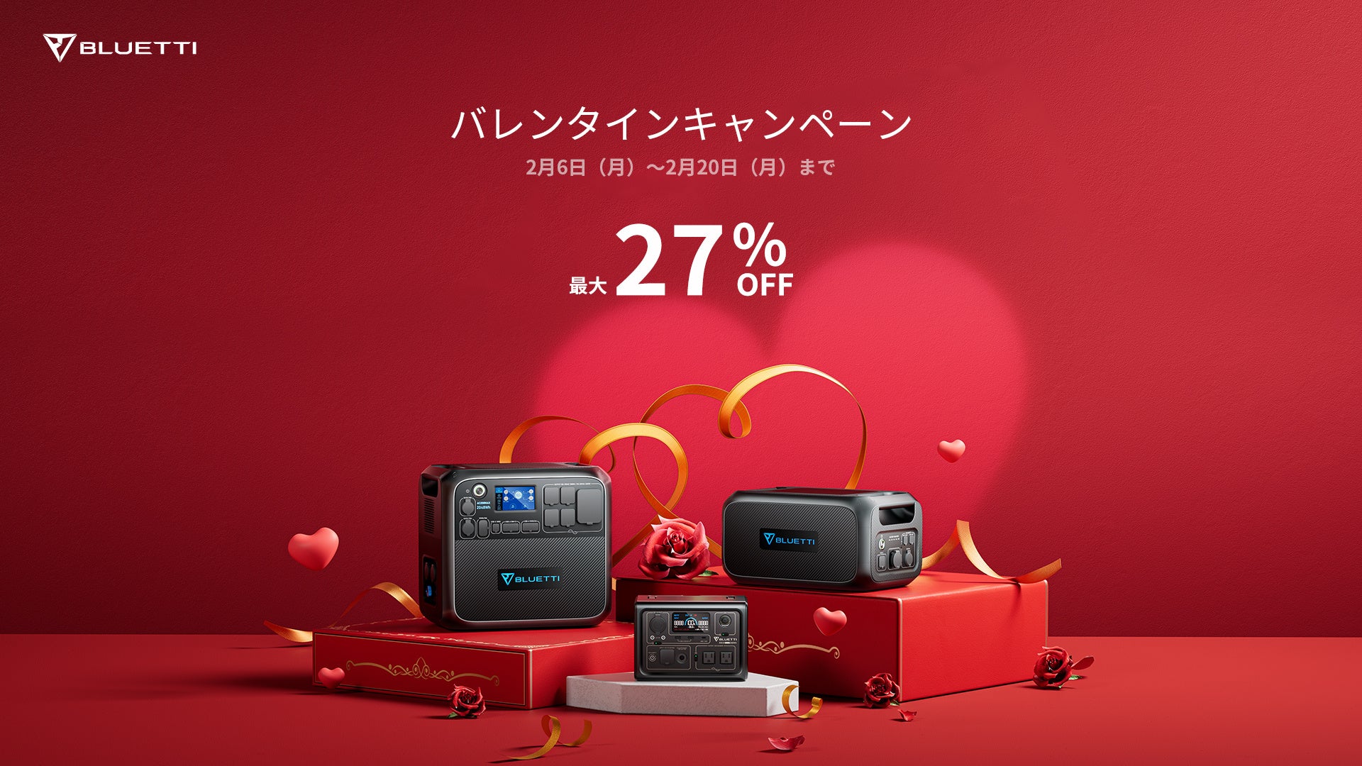 BLUETTI JAPAN株式会社(ブルーティ)は、バレンタインキャンペーンを2022年2月6日(月)から2月20日(月)まで実施します。