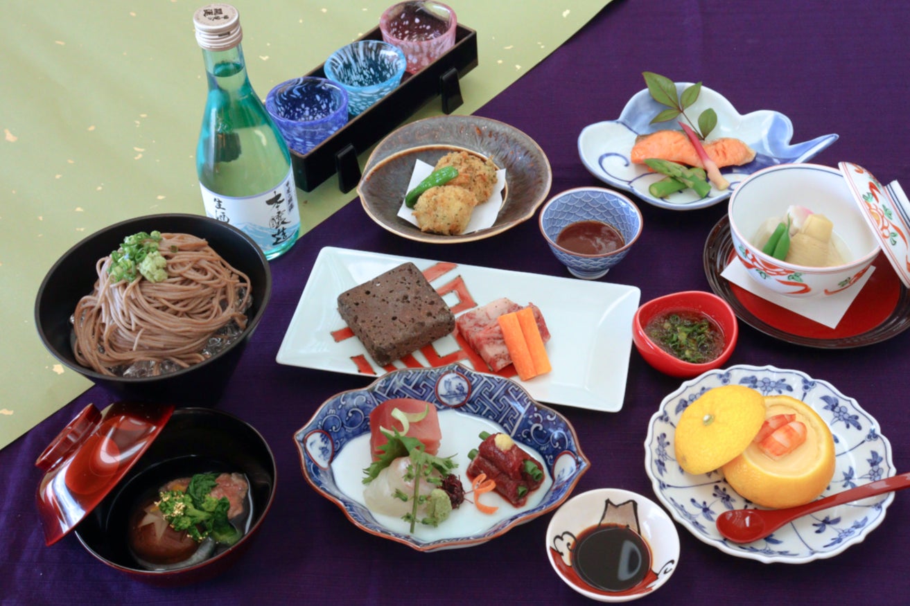 追加料金(1名12,000円)で「富士山ディナーコース(和・洋)」選択可(ワンドリンクサービス付き)