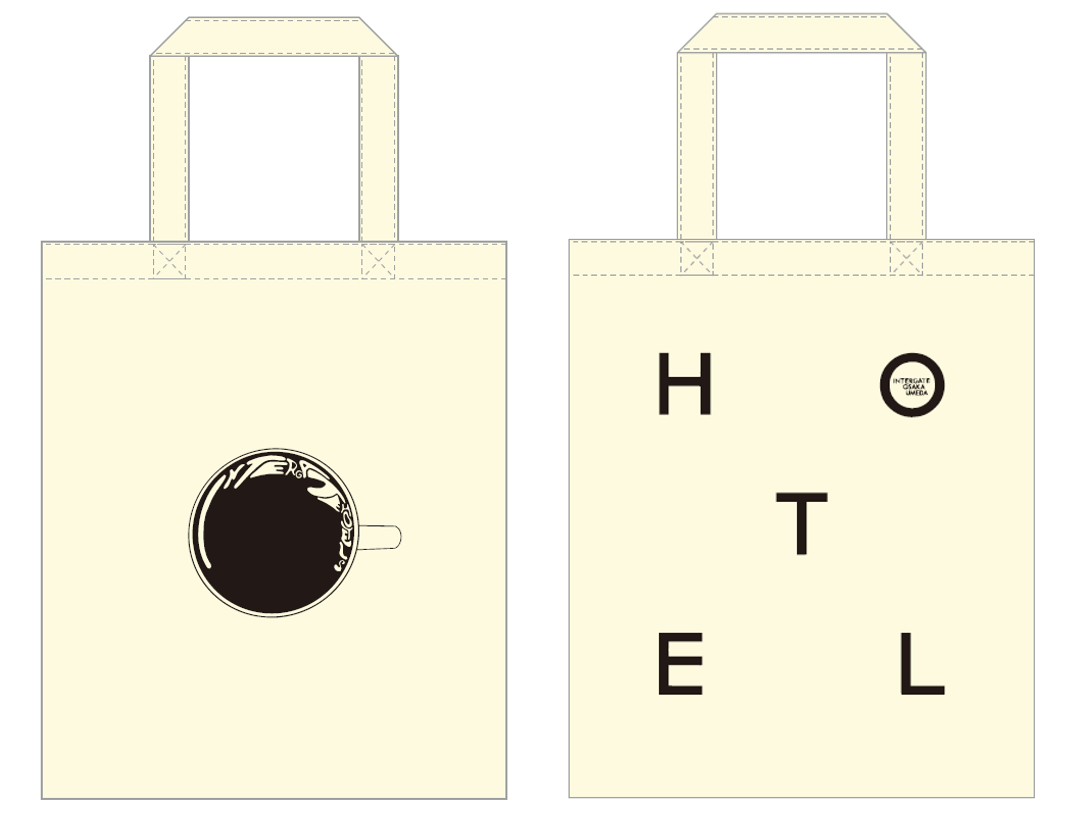 ホテルの魅力をさりげなく入れ込んだデザインで、普段使いしやすいエコバッグを制作しました。学生が手掛けたデザインのモチーフは、インターゲートホテルズのラウンジで提供している「こだわりのコーヒー」と、ホテルインターゲート大阪 梅田に宿泊した記念としてお持ちいただける2種類。大阪の旅の想い出に、ぜひご活用ください。