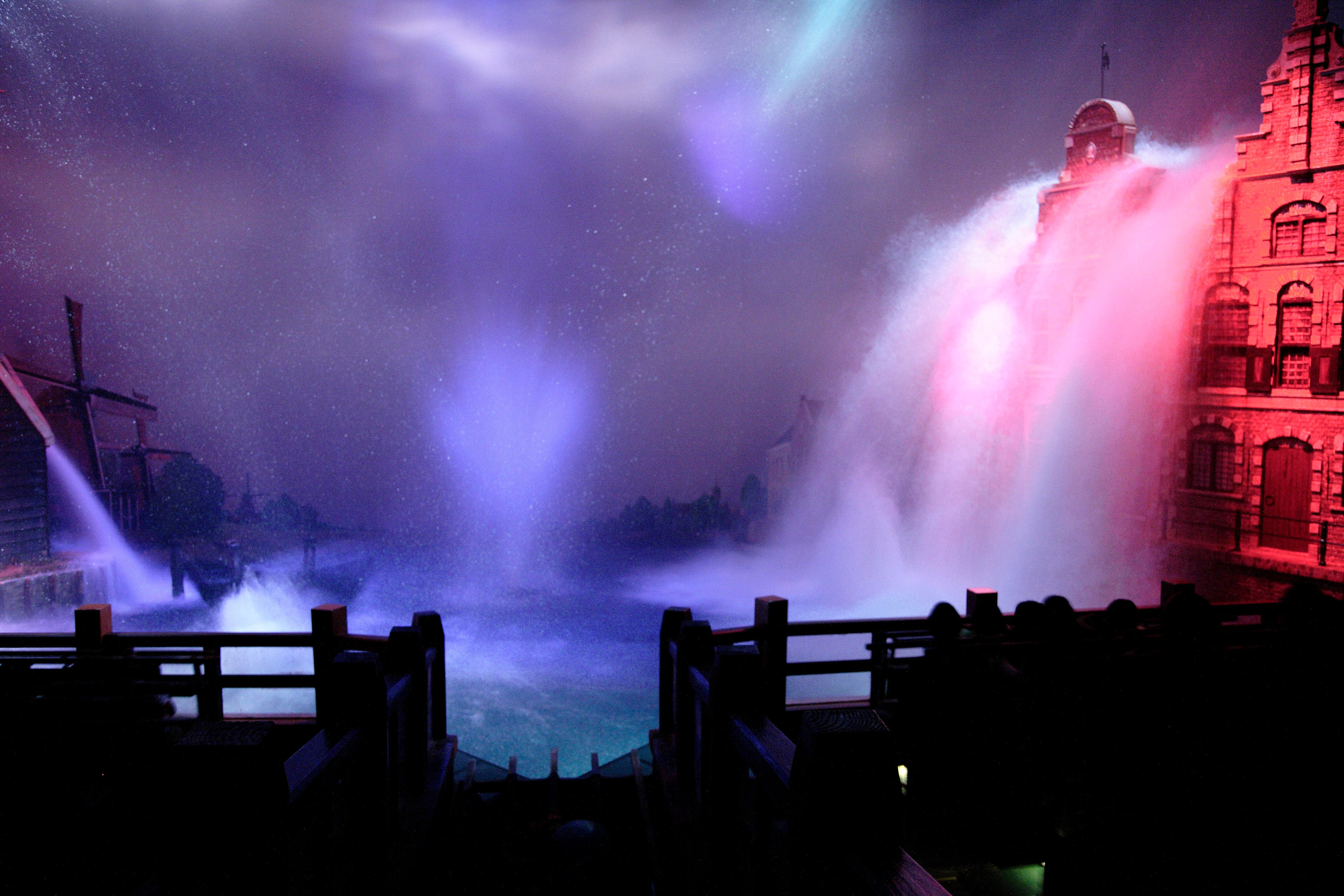 開業当初から愛され、累計2000万人もの人々が体験した大迫力の体感シアターアトラクションです。実際に17世紀のオランダで発生した大洪水をモデルにしたストーリーになっており、その猛威を体験することができます。特殊装置を駆使して霧や稲妻、波、豪雨、竜巻が発生し、800トンもの本物の水が客席をのみこみます。また、大迫力の音や映像に合わせて椅子が揺れ、臨場感はたっぷり。ひとりひとりが主人公と同じ体感・感動を味わえます。