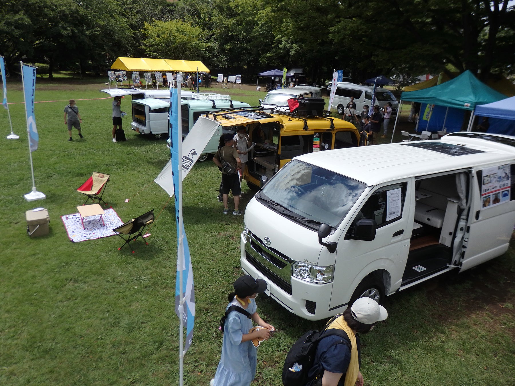 会場には災害時でも機動力を発揮するコンパクトな軽キャンパーやミニバン等の車中泊モデル、本格的なキャブコンバージョンまで様々なモデルが集まります。