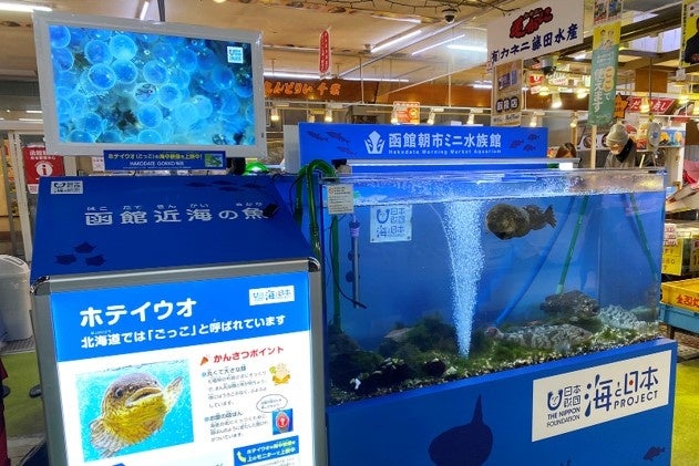 一般社団法人Blue Commons Japanは、2月6日(月)より、函館の冬の郷土料理・ごっこ汁で函館市民におなじみの「ごっこ(正式名称:ホテイウオ)」の企画展示を函館朝市えきに市場内にて行います。 函館市内のスーパーなどで食材として販売しているのを見かけることはあっても、実際に泳いでいる姿を目にすることがない「ごっこ」。水槽での生体展示とあわせて、今回初の試みとして、函館市南茅部地区の海中で撮影した「ごっこ」の映像を水槽横モニターで上映します。この企画は、次世代へ豊かで美しい海を引き継ぐために、海を介して人と人とがつながる“日本財団「海と日本プロジェクト」”の一環です。