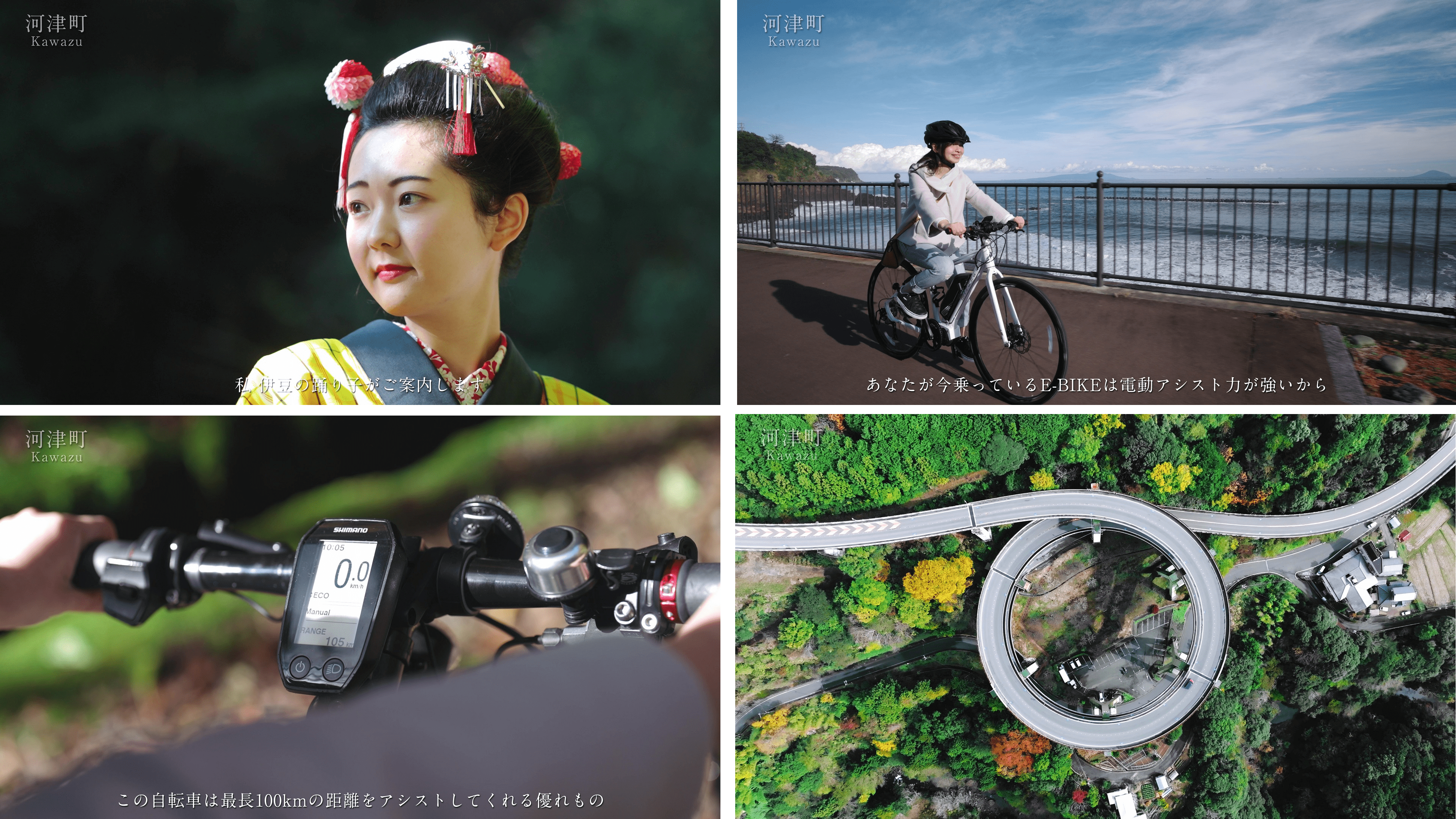 動画内では、河津町が小説・映画『伊豆の踊子』の舞台になったことにちなみ、踊り子がE-BIKEと河津町観光の魅力を「天の声」でガイドしています。本動画は現在、河津町の公式YouTubeチャンネルで公開しています。
