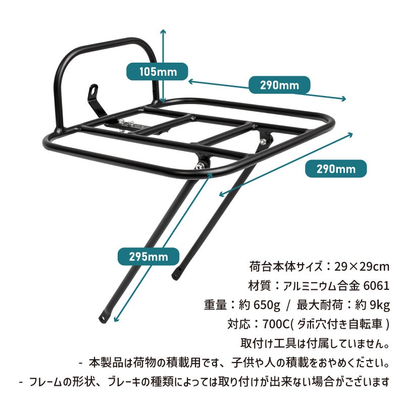 ※ 本製品は荷物の積載用です、子供や人の積載をおやめください。