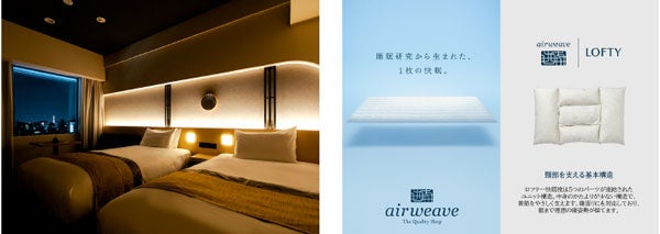 高層階確約のプレミアムツインルームは、テレビCMでも話題の「ミラブルzero」とボディケアマシン「MYTREX」を導入した客室を昨年8月より販売しておりますが、この度新たに「エアウィーヴ」のマットレスと首筋をやさしく支える「LOFTY(ロフテー)」の枕を設置した客室を増室いたしました。