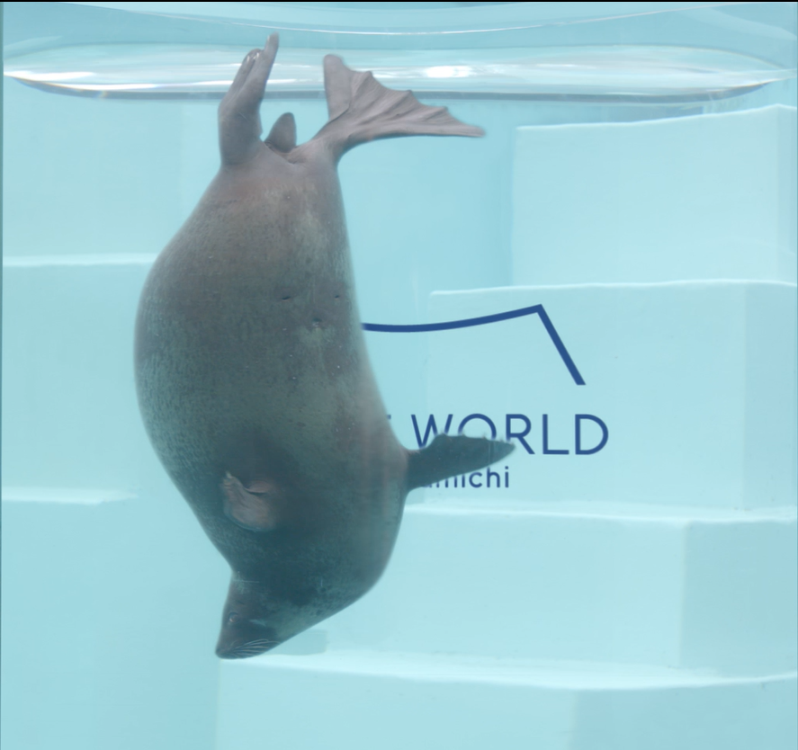 アザラシの泳ぎ方などの生態や、かわいらしさを表現した映像となっておりますので、通勤通学の際や、天神にお越しの際はぜひお立ち寄りください!