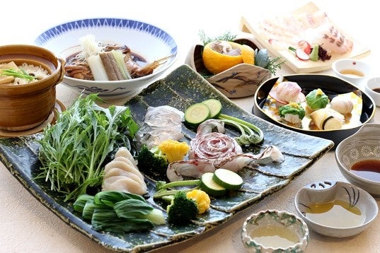 鳴門海峡(大鳴門橋)を目前に臨む淡路島のリゾートホテル、ホテルアナガ(所在地:兵庫県南あわじ市阿那賀1109総支配人:鈴木大輔)にて、鳴門海峡周辺で水揚げされる鳴門鯛と旬の海の幸をメインに、淡路島で穫れた旬菜を三種の自家製ポン酢でお楽しみ頂くご当地グルメ「渦潮しゃぶしゃぶ鍋」が2月3日(金)~誕生いたしました。鍋料理で人気のあった阿那賀自家製ポン酢に平岡農園にて収穫された「マイヤーレモン」の他「淡路島みかん」を使い、それぞれ特徴ある甘味と香り、味わいを持つポン酢を完成させお楽しみいただきます。旬の海の幸はもちろんの事、素材に恵まれた島の幸としてクレソンや旬菜等のしゃぶしゃぶは、素材のシャキシャキした歯ごたえも楽しめる淡路島ならではの新メニューとして誕生いたしました。詳しくは、ホテルアナガHP(http://www.hotelanaga.com/restaurants/anaga/)より 。