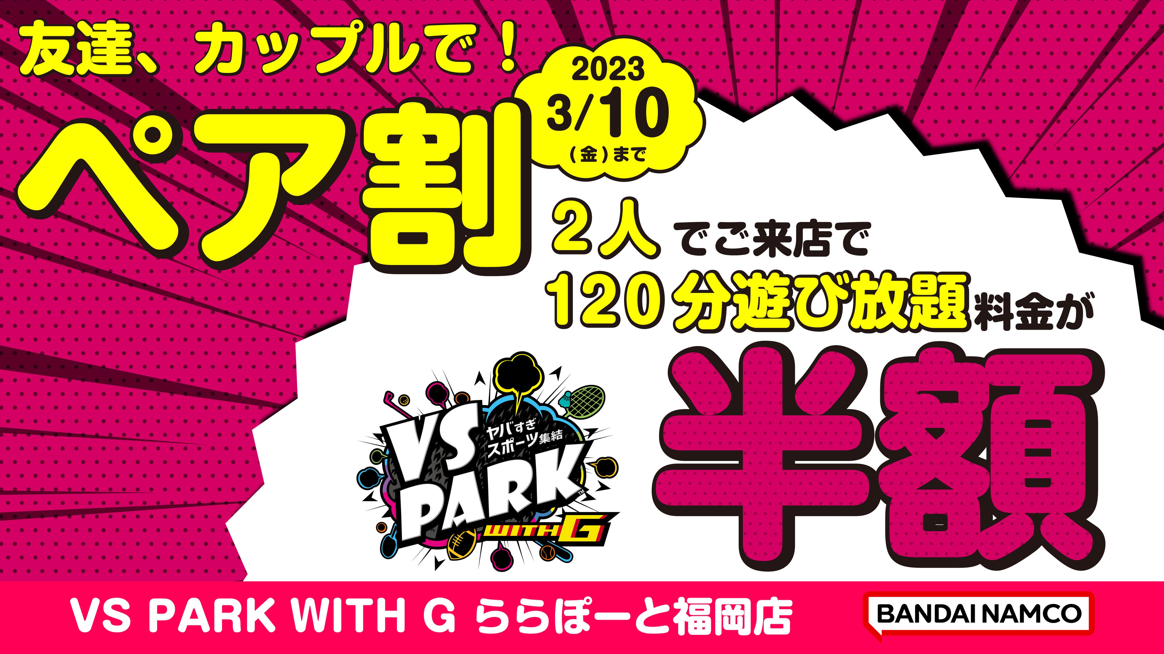 ※「ペア割」利用の際は、『VS PARK WITH Gららぽーと福岡店』のLINE友だち登録が必要です。
