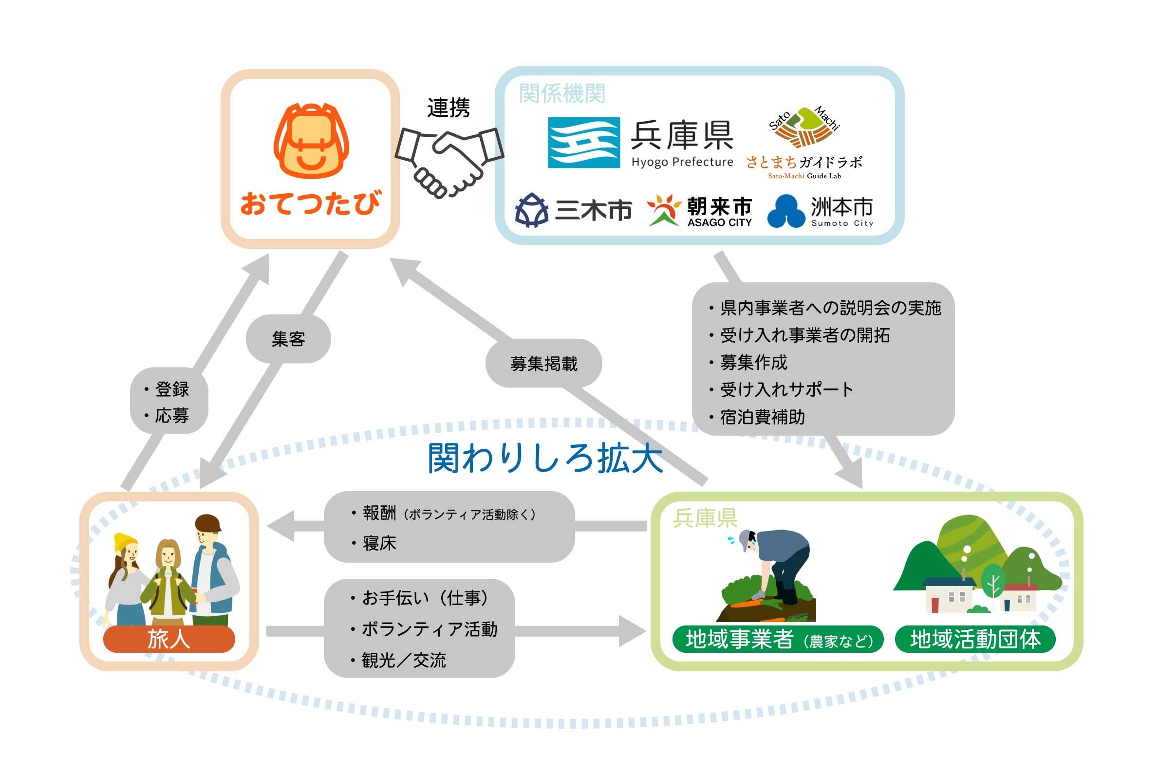 季節的・短期的な人手不足をキッカケに地域の関係人口を創出するマッチングサイト『おてつたび』を運営する株式会社おてつたび(本社:東京都渋谷区、代表取締役CEO:永岡里菜、以下「おてつたび」)は、兵庫県ならびに関係市町(朝来市、洲本市、三木市)及び『ひょうご関係人口案内所』と連携し、関係人口の創出・地域経済の活性化に取り組みました。